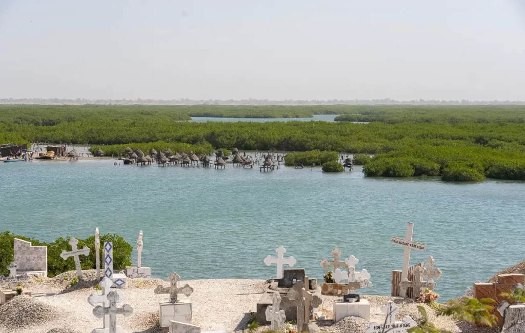 Le cimetière mixte de Fadiouth est un lieu magnifique: c’est un cimetière accueillant à la fois des tombes musulmanes et chrétiennes, qui se trouve sur un petit îlot entouré par la mer et relié au reste du village par un pont de bois. Au passage, c’est en traversant ce pont que l’on peut admirer sur la droite les greniers à mil, qui servaient autrefois à protéger la récolte des incendies qui pouvaient se propager dans les maisons. Ceux-ci ne sont désormais plus utilisés mais ont été conservés comme témoignage culturel.